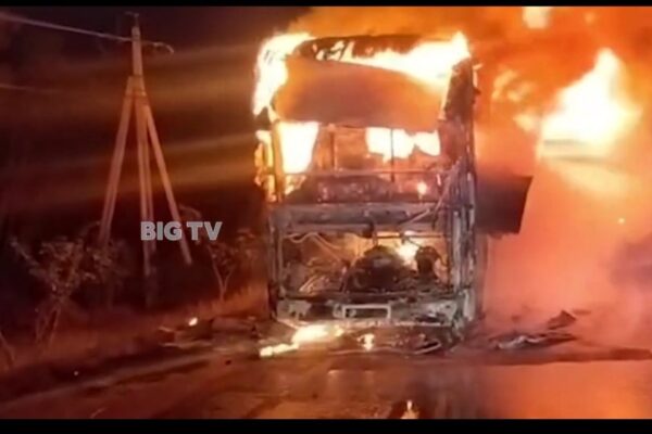Oplus_16908288 نندیگام: آندھراپردیش کے این ٹی آر ضلع کے نندیگام کے قریب ایک پرائیویٹ ٹراویلس بس اچانک آگ کی لپیٹ…