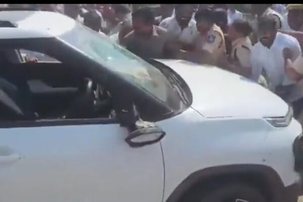 Oplus_131072 کاماریڈی میں بی جے پی ایم ایل اے کیمپس آفس کے باہر ہنگامہ، کانگریس لیڈر کی کار الٹ دی…
