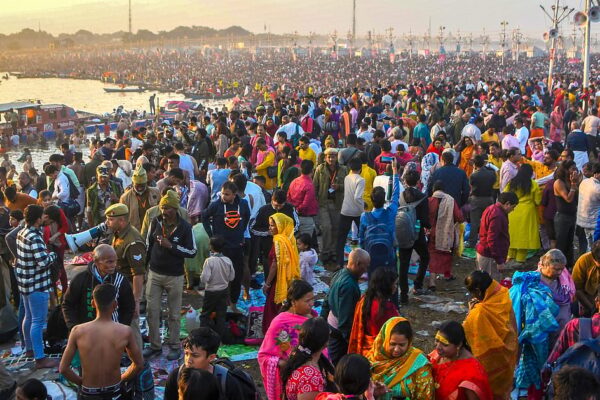اتر پردیش کے پریاگ راج میں مہا کمبھ کے دوران پورے چاند کے اسنان سے پہلے ضلع کی سرحد کے…