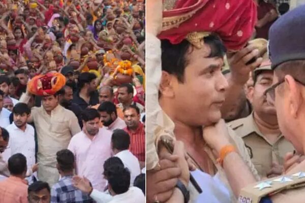 واقعے کے دوران بی جے پی ایم ایل اے نندکیشور گوجر رام چرِت مانس کو سر پر رکھ کر یاترا…