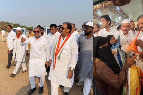 محمد علی شبیر کا نظام آباد میں عید گاہوں کا معائنہ۔ خواتین میں عید کٹس کی تقسیم