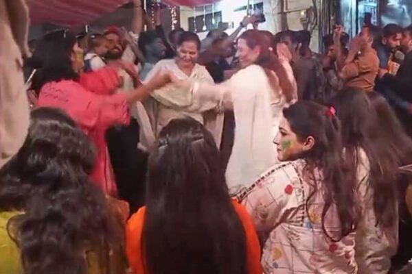 ہندو عورتوں نے مختلف ہندی گیتوں خاص طورپر امیتابھ بچن کے گیت رنگ برسے بھیگے چنروالی پر رقص کیا لاہور(پی…
