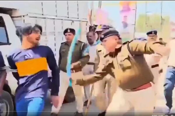 ذبیحہ گاؤں کے الزام میں مسلمانوں کو پولیس کی مارپیٹ۔ پولیس عہدیدار کی گلپوشی اور ستائش (ویڈیو)