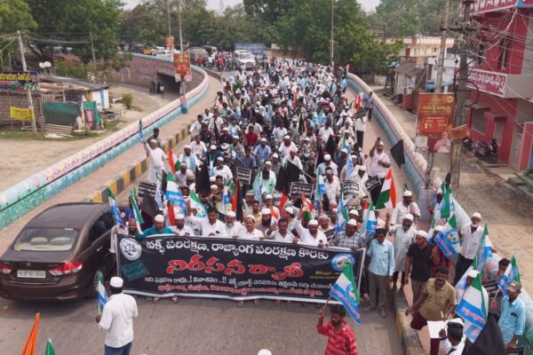 وقف ترمیمی قانون کے خلاف تلنگانہ کے کھمم ضلع کے مدیرا ٹاؤن میں مسلمانوں کی جانب سے ایک زبردست احتجاجی…