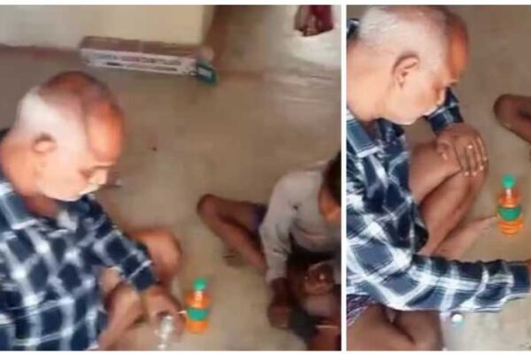ویڈیو میں دیکھا جا سکتا ہے کہ استاد ایک بند کمرے میں بچوں کو کپ میں مشروب دے رہا ہے۔…