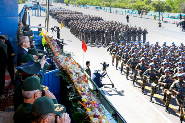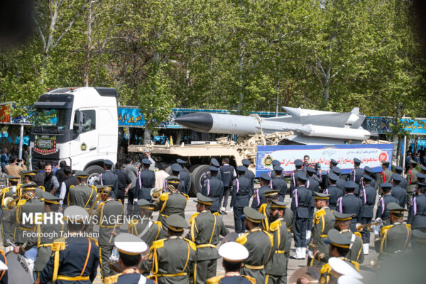 ایرانی مسلح افواج کے یومِ پریڈ کی تقریب میں مختلف ممالک کے سفیروں اور فوجی کمانڈروں نے شرکت کی۔ []