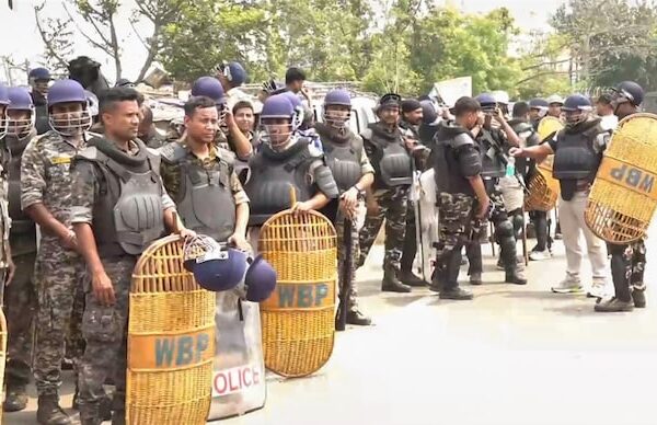 Photo courtesy to PTI مرشدآباد، مغربی بنگال: مرکزی حکومت کے متنازعہ وقف (ترمیمی) قانون 2025 کے خلاف ہفتے کو مغربی…