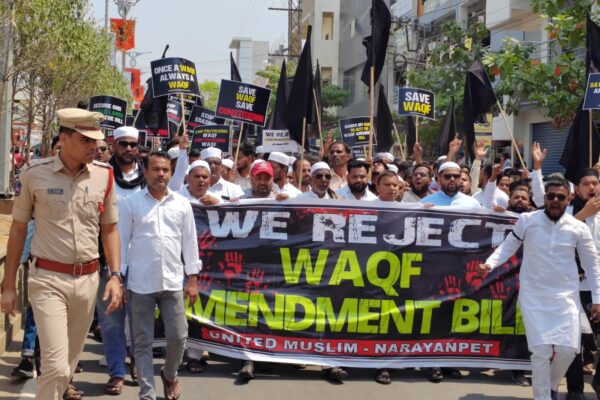 تلنگانہ کے نارائن پیٹ میں کل جماعتی مسلم قائدین کی جانب سے وقف ترمیمی بل کے خلاف زبردست احتجاجی ریالی