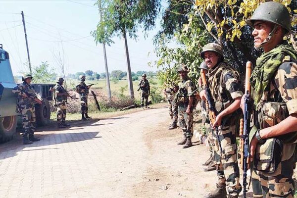 جموں میں پاکستانی درانداز کی ہلاکت کے بعد بی ایس ایف جوانوں کا کڑا پہرہ۔(یو این آئی) جموں (آئی اے…