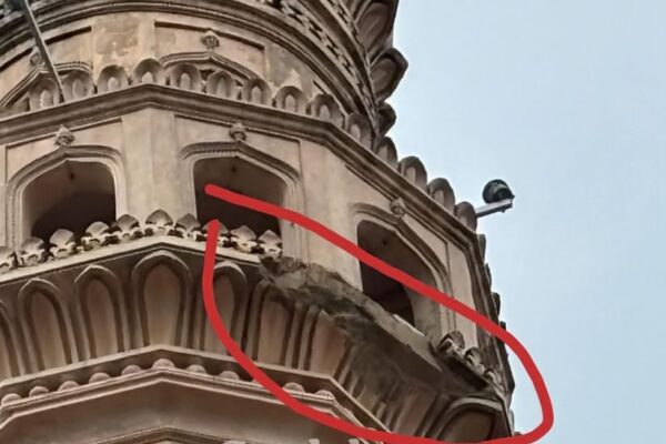حیدرآباد: تلنگانہ کے دارالحکومت حیدرآباد میں شدید بارش کے دوران تاریخی چارمینار کی ایک مینار کا کچھ حصہ گرپڑا جس…