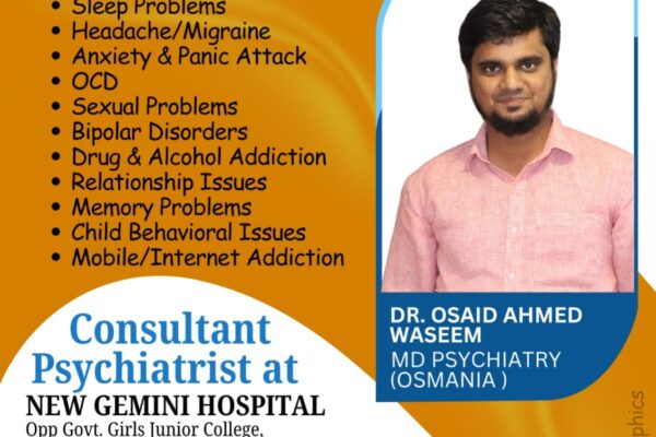 Oplus_16908288 کریم نگر: نوجوان اور باصلاحیت ماہر نفسیات ڈاکٹر اوسید احمد نے کریم نگر کے عثمان پورہ میں واقع نیو…