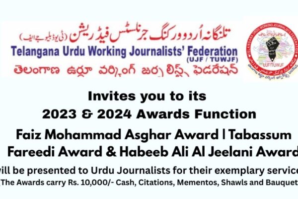 حیدرآباد ۔ تلنگانہ اردو ورکنگ جرنلسٹس فیڈریشن کی جانب سے اردو سے وابستہ صحافیوں کے سالانہ ایوارڈ تقریب ھفتہ 10…