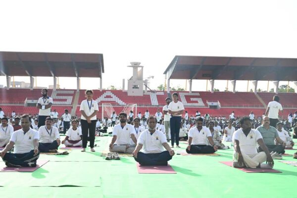 حیدرآباد: گاچی باؤلی اسٹیڈیم کے جی ایم سی بال یوگی اسپورٹس اسٹیڈیم میں ہفتہ کی صبح 11واں عالمی یوگا ڈے…