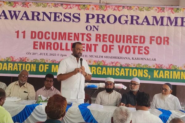 فیڈریشن آف مسلم آرگنائزیشن کریمنگر کے زیراہتمام مسلم شادی خانہ کریم نگر میں ایڈوکیٹ محمد جمیل الدین کی صدارت میں…