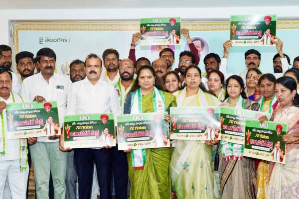 بی سی ریزرویشن کیلئے کے کویتا کی بھوک ہڑتال۔ پوسٹرجاری حیدرآباد: تلنگانہ جاگروتی کی صدر اور بی آر ایس کی…