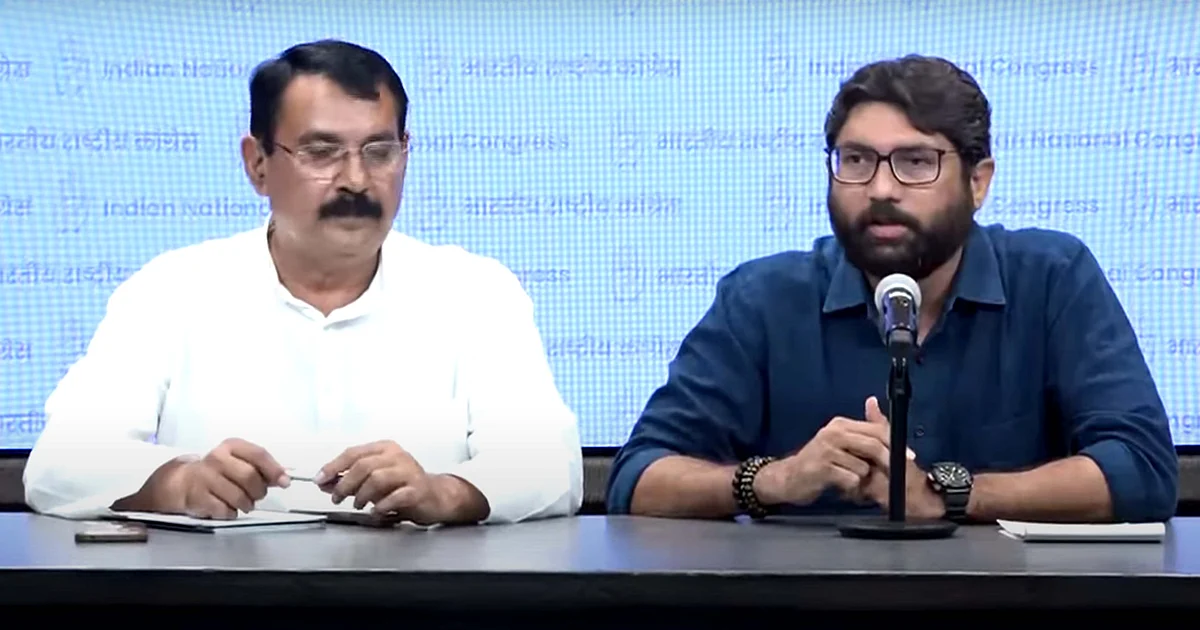 نئی دہلی میں کانگریس کے نئے اے آئی سی سی ہیڈکوارٹر پر منعقدہ ایک پریس کانفرنس میں گجرات کے وڈگام…