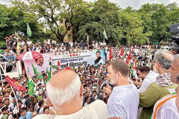 راہول گاندھی‘ آر جے ڈی کے تیجسوی یادو اور بایاں بازو قائدین ڈی راجہ‘ ایم اے بے بی اور دیپانکر…