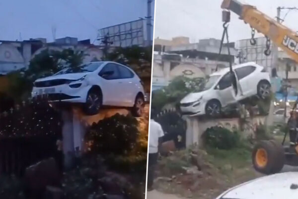 دیوار پر چڑھی کار کا ویڈیو وائرل، پولیس نے کرین سے گاڑی کو اتارا تلنگانہ کے ضلع میدچل میں ایک…