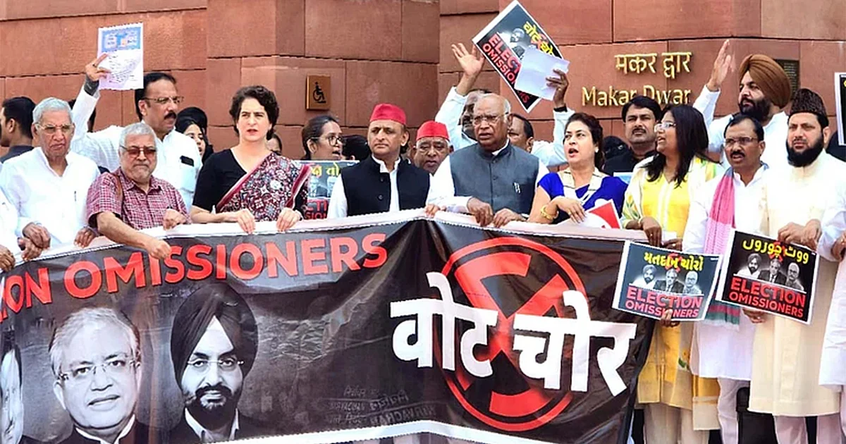 انڈیا اتحاد کے رہنماؤں نے پارلیمنٹ کے احاطے میں ’ووٹ چوری‘ اور بہار میں ووٹر لسٹ کی خصوصی نظرثانی (ایس…