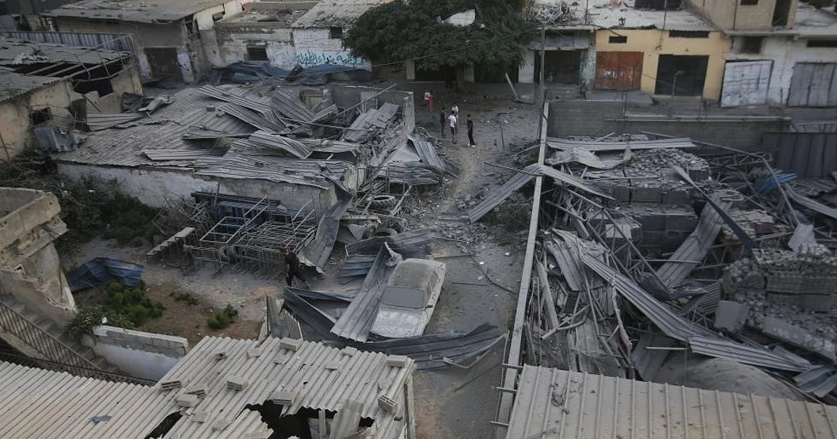 فلسطینیوں نے شمالی غزہ میں ایک مقام پر فوج کی جانب سے پیچھے چھوڑے گئے مائع بارودی مواد کے کنٹینر…