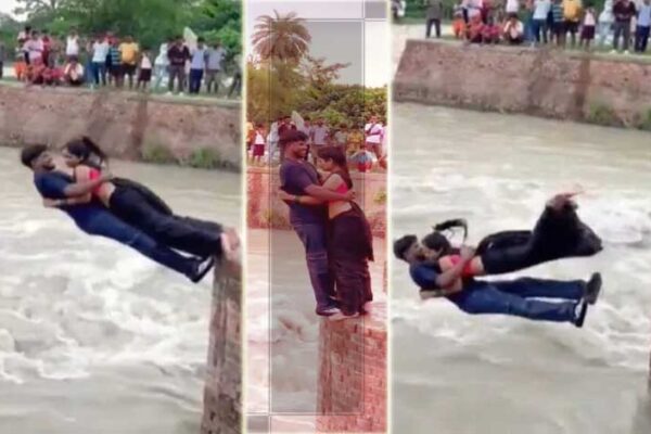 جوڑا پہلے فلمی انداز میں ایک دوسرے کو بانہوں میں بھر لیتا ہے اور پھر پانی میں ایک ساتھ چھلانگ…