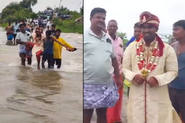 تالاب کے پانی کا شدید بہاو، دلہے کوکندھوں پر اٹھا کر پارکروایاگیا،ویڈیووائرل ،تلنگانہ کے کریم نگر میں دلچسپ واقعہ حیدرآباد:…
