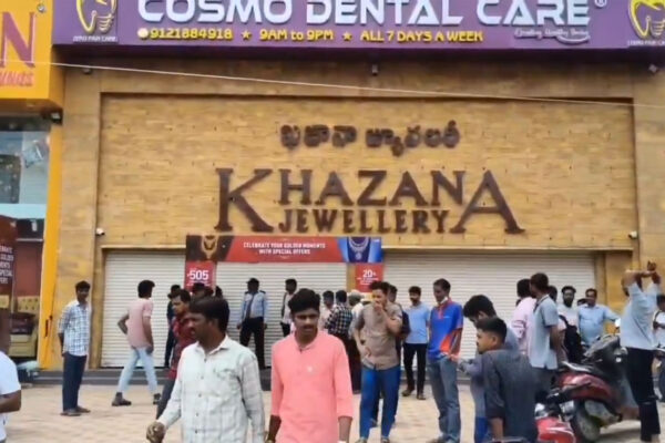 حیدرآباد کے چندانگر میں دن دہاڑے خزانہ جیولرز پر ڈکیتی ۔ڈاکو لاکھوں روپے مالیت کے زیورات لوٹ کر فرار حیدرآباد:…