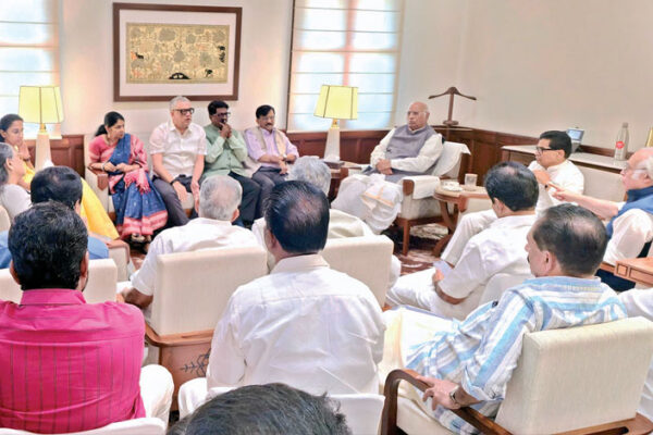 پارلیمنٹ ہاؤز میں انڈیا بلاک فلور لیڈرس کے ساتھ قائد اپوزیشن راجیہ سبھا ملیکارجن کھرگے کی میٹنگ۔(یو این آئی) نئی…