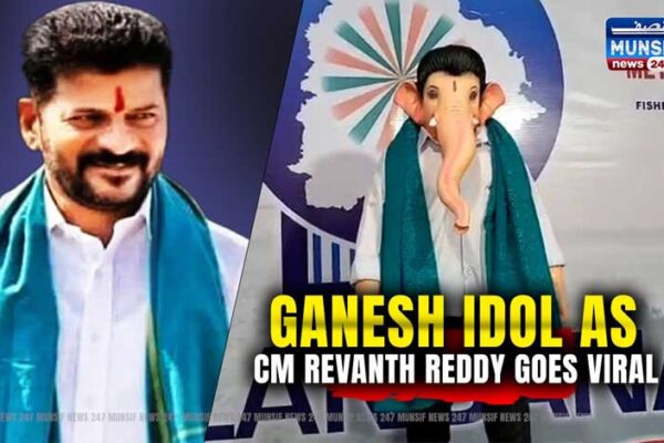 گنیش کی اس مو رتی میں کپڑوں کی شباہت چیف منسٹر ریونت ریڈی سے ملتی جلتی ہے۔ حیدرآباد: ونائکا چوتھی…