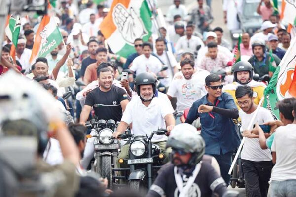قائد اپوزیشن لوک سبھا راہول گاندھی اور آر جے ڈی قائد تیجسوی یادو ارڑیہ میں موٹر سیکل چلاتے دیکھے گئے۔…