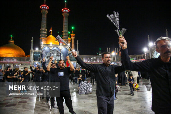 شبِ شہادت امام علی رضا علیہ السلام کے موقع پر ایران کے شہر قم میں مذہبی جلوس اور عزاداری کے…