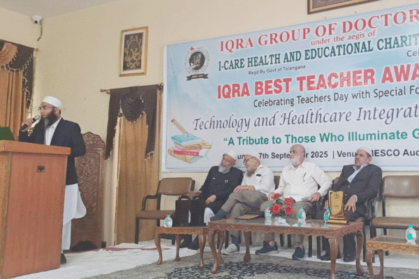 حیدرآباد: اقرا گروپ آف ڈاکٹرز کی جانب سے میسکو آڈیٹوریم، ملک پیٹ میں منعقدہ بیسٹ ٹیچر ایوارڈ تقریب میں مولانا…