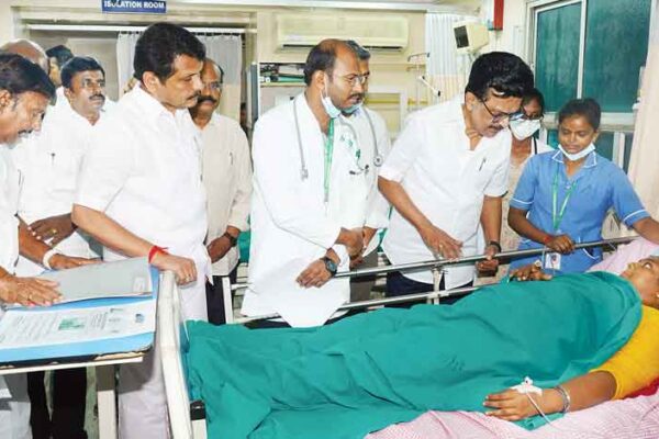 چیف منسٹر ٹاملناڈو ایم کے اسٹالن ٹی وی کے ریالی میں بھگدڑ میں زخمی ایک خاتون کی مزاج پرسی کرتے…