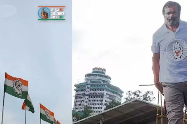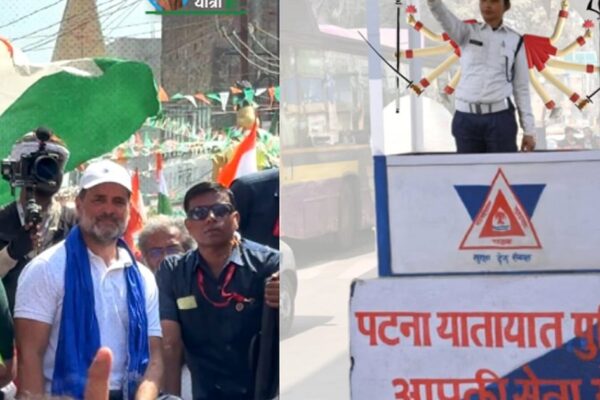 ڈاک بنگلہ چوراہا پر ووٹر ادھیکار یاترا کی آمد کے وقت بھٹا چاریہ چوراہا، سوامی نارائن تراہا، مہارانا پرتاپ گولمبر،…
