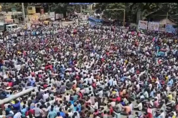 Oplus_16908288 کرناٹک کے دھارواڑ میں ہزاروں نوجوان سرکاری ملازمتوں پر تقررات کا مطالبہ کرتے ہوئے سڑکوں پر نکل پڑے ۔…