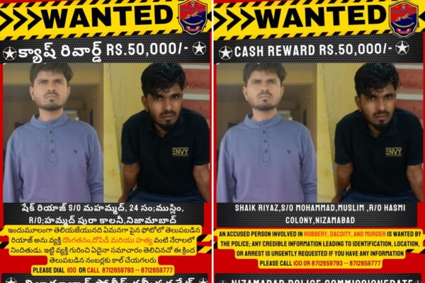 Oplus_16908288 نظام آباد میں پولیس کانسٹیبل کے قتل میں ملوث ملزم کی گرفتاری کے لئے (50) ہزارنقد انعام دینے کمشنر…