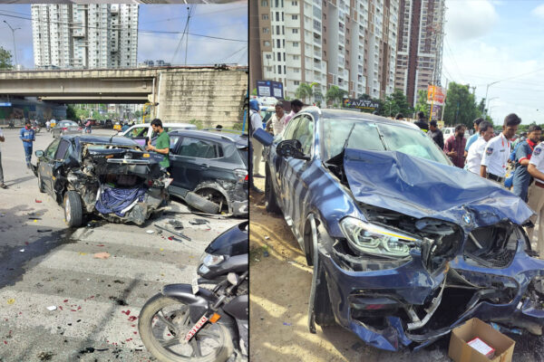 تلنگانہ:بے قابو بی ایم ڈبلیو کار، ایک اورکار کے ساتھ ساتھ بائیک سے ٹکراگئی،خاتون شدیدزخمی