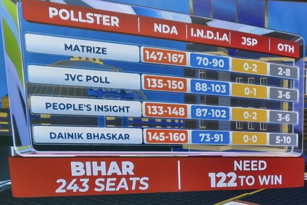 بہار میں پھر این ڈی اے حکومت بننے کے آثار — ایگزٹ پولز میں نتیش کمار کو واضح برتری …