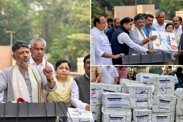 ’ووٹ چور گدی چھوڑ‘ مہم کے تحت جمع کیے گئے 1.21 کروڑ دستخط کو ڈی کے شیوکمار نے ہائی کمان کے حوالے کیا