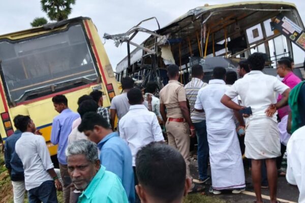Oplus_16908288 تمل ناڈو کے ضلع سیواگنگا کے کمّنگوڈی کے قریب اتوار کی شام دو سرکاری بسوں میں خوفناک آمنے سامنے…