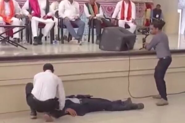 بی جے پی کے پروگرام میں سیکورٹی گارڈ گر کر بے ہوش — مگر اسٹیج پر بیٹھے لیڈران بے حس،…