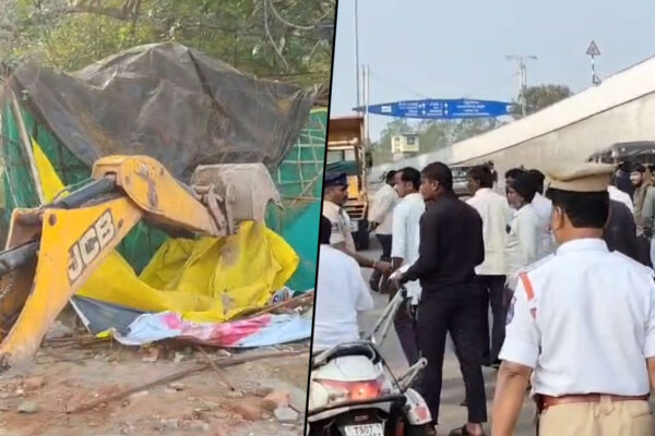 آرام گھر چوراہے پر تجاوزات مہم کے آغاز پر پولیس کی بھاری سیکیورٹی رنگاریڈی: راجندرنگر سرکل کے تحت پلر نمبر…