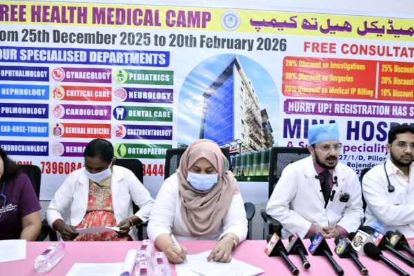 مینا سپر اسپیشلٹی ہاسپٹل کی جانب سے 60 روزہ مفت میگا ہیلتھ کیمپ کا انعقاد حیدرآباد، 25 دسمبر 2025:…