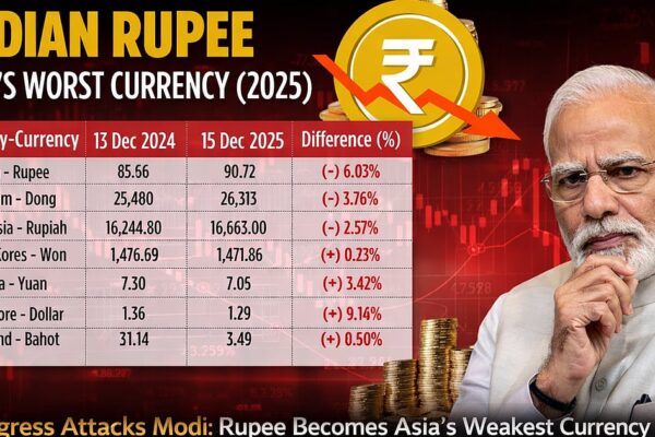 کانگریس کے مطابق 2025 کے دوران ڈالر کے مقابلے ہندوستانی روپیہ تقریباً 6.03 فیصد کمزور ہوا، جو ایشیائی خطے کی…