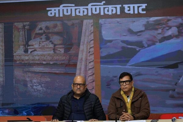 وارانسی کے منی کرنیکا گھاٹ پر مندروں اور مورتیوں کو توڑے جانے کے خلاف آواز اٹھاتے ہوئے کانگریس لیڈر اجئے…